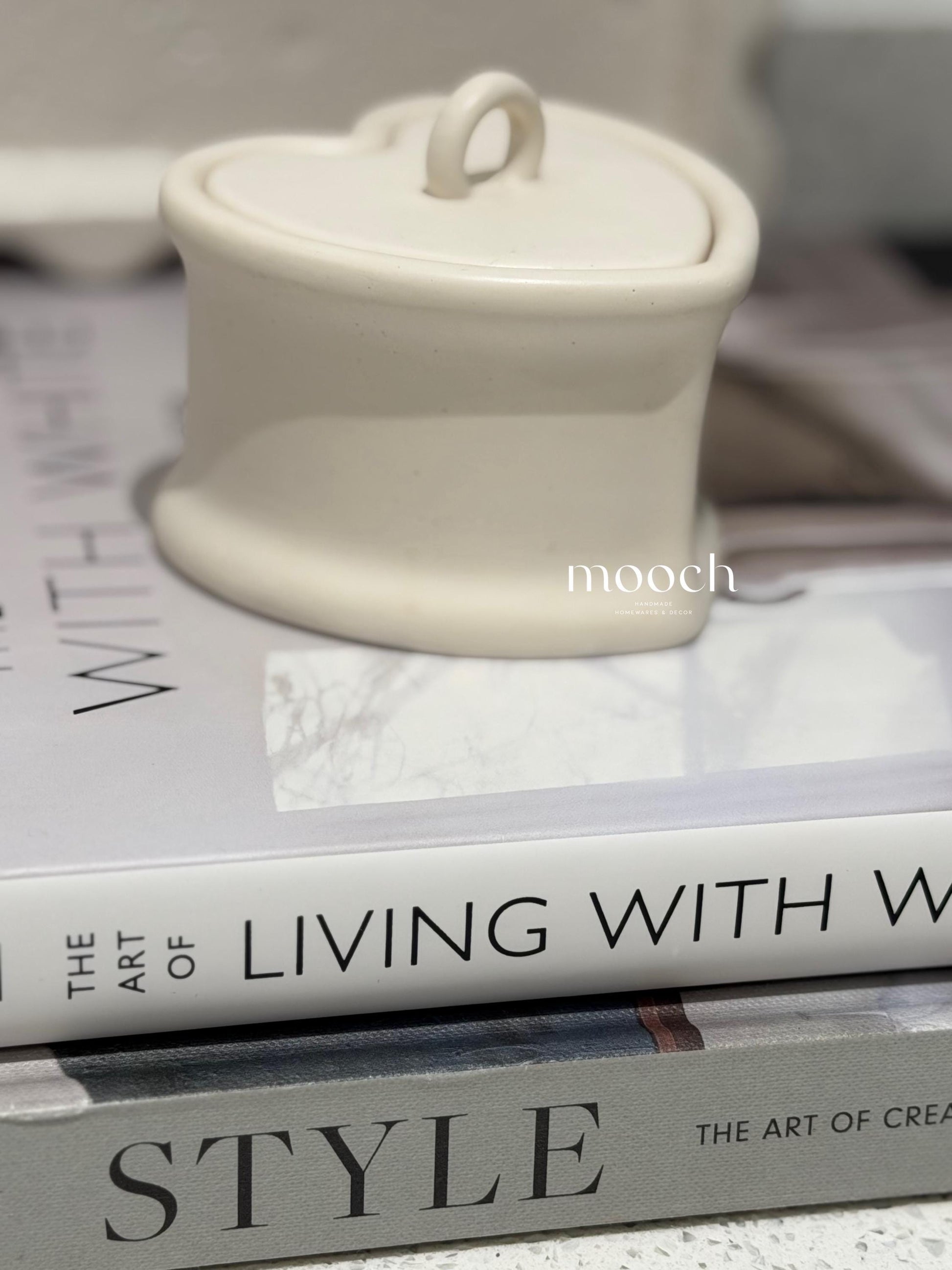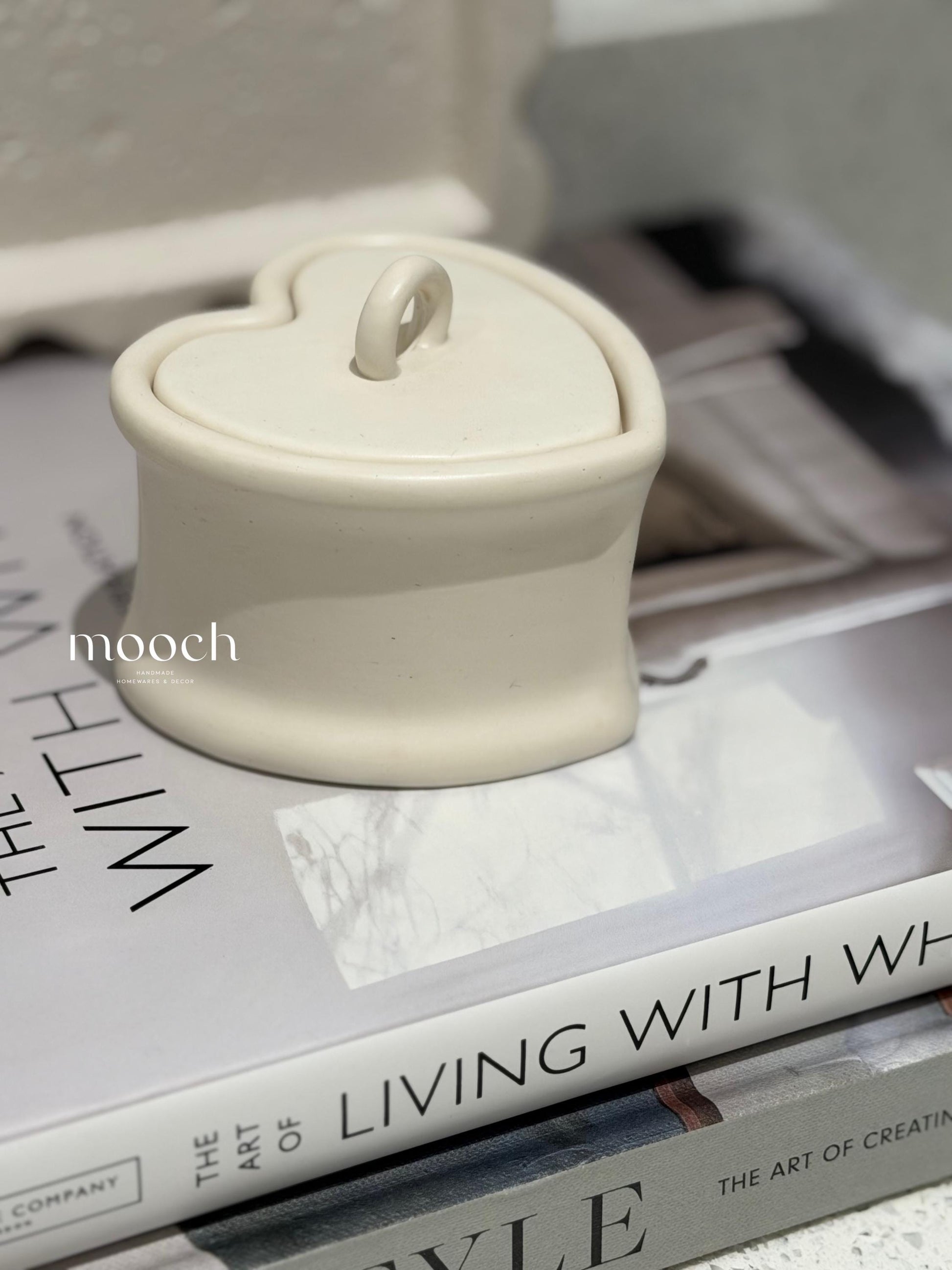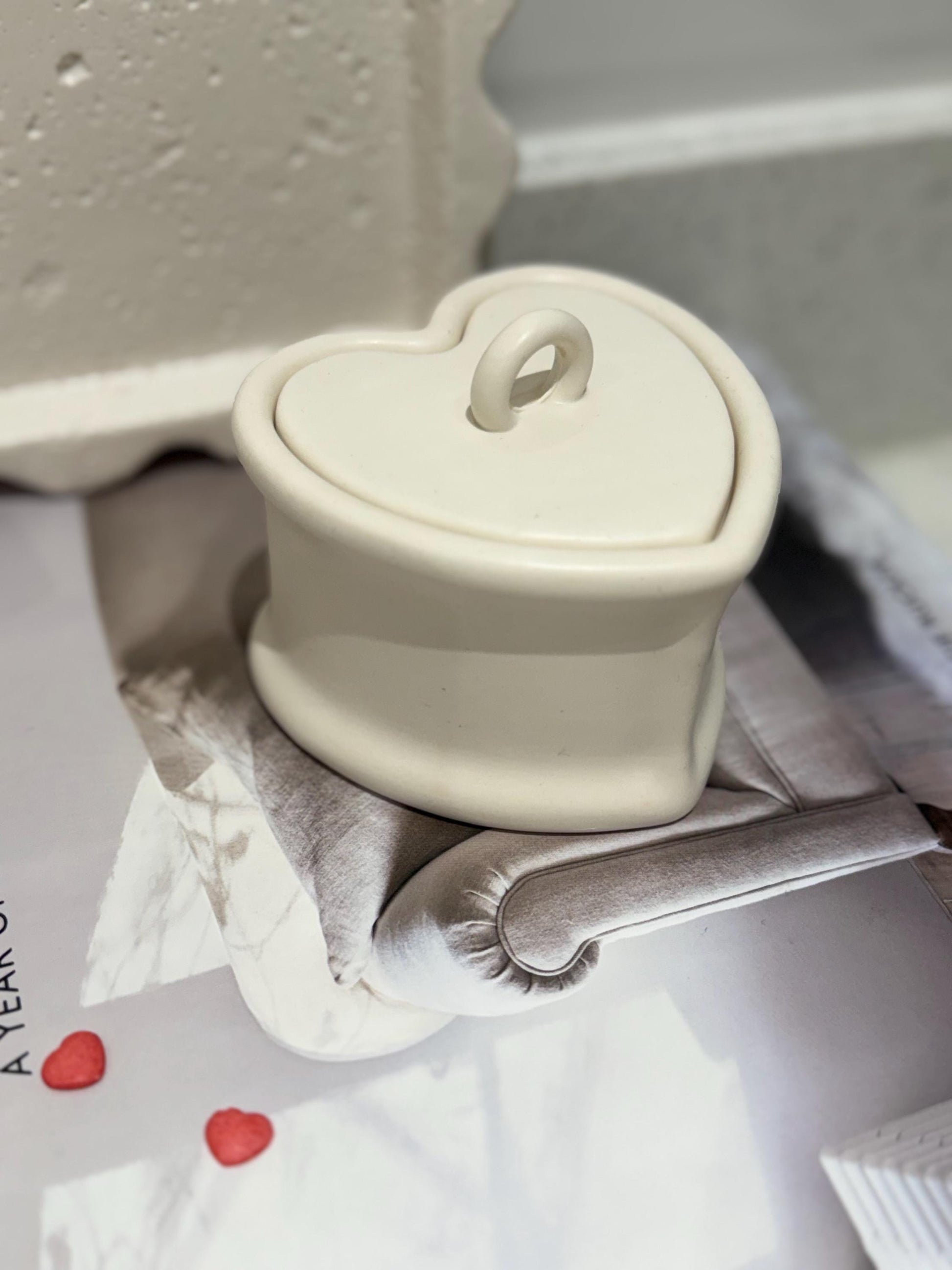 Handmade Heart Trinket Pot with Lid | Neutral Home Decor